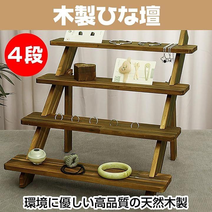 4段ひな壇、天然木製、ブラウン、金属ビス付き。