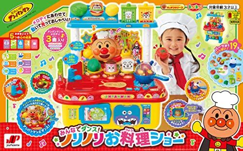 「アンパンマンのマーチ」のメロディが流れ、アンパンマンとお皿のステージが動き、コンロが動いてピカピカ光ります。
