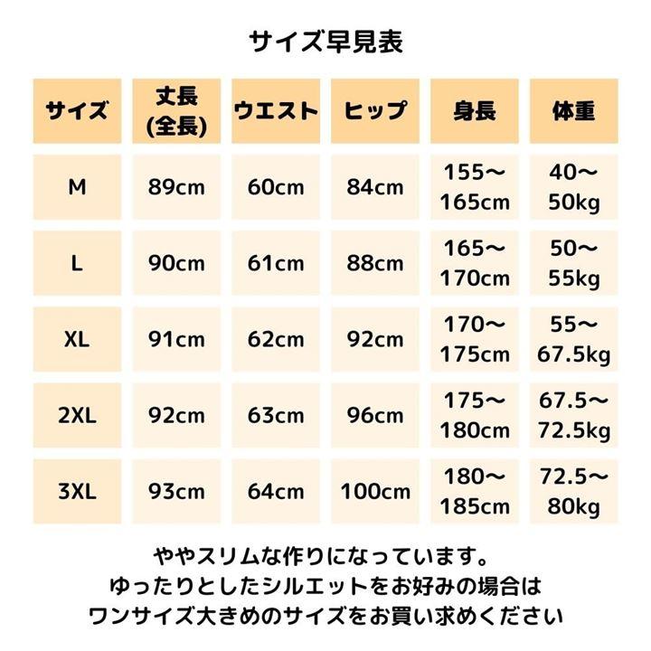 「サイズ」M:155~165cm・40~50kg、L:165~170cm・50~55kg、XL:170~175cm・55~67.5kg、2XL:175~180cm・67.5KG~72.5kg、3XL:180~185cm・72.5~80kg。