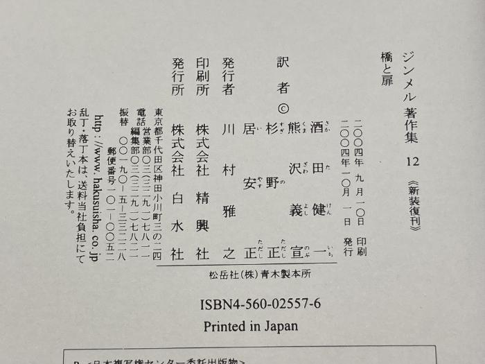 商品名:ジンメル著作集 12 新装 白水社 ジンメル