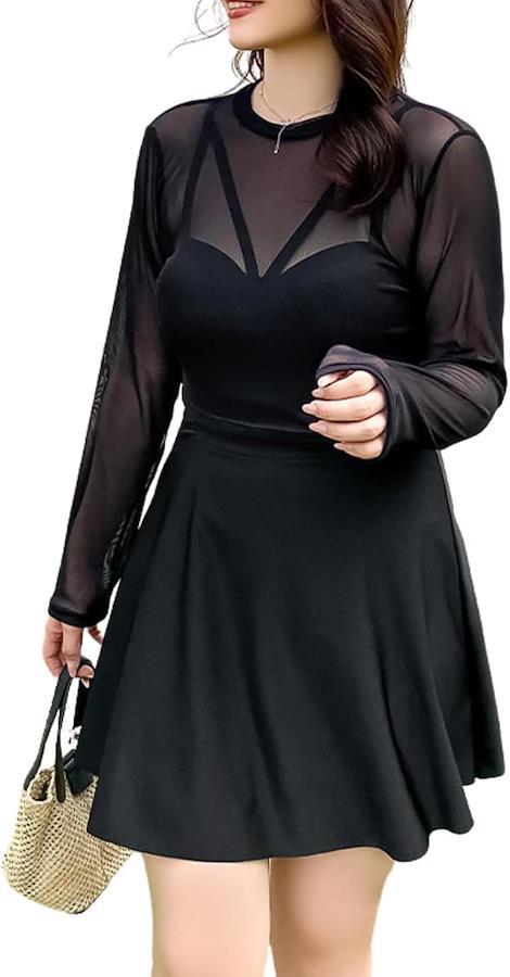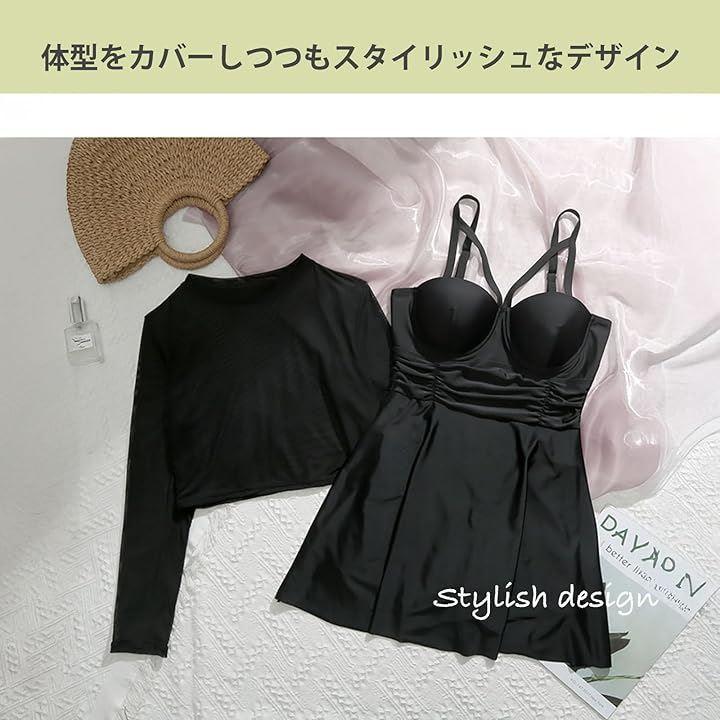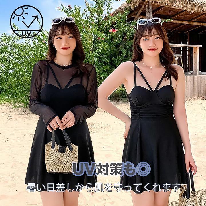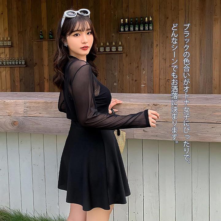 お肌の露出を控えたい方にオススメのシースルー長袖もセットになった2way楽しめるスウィムウェアです。