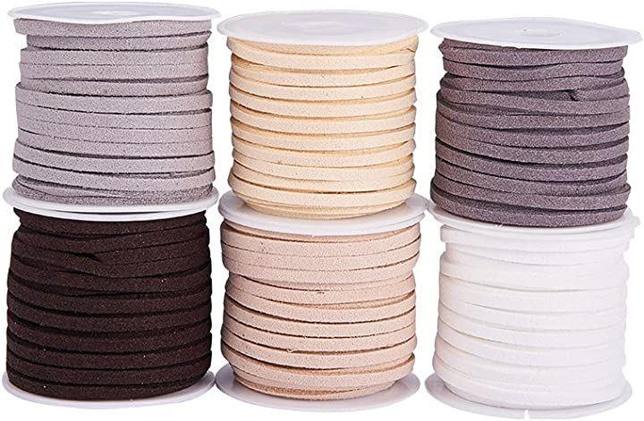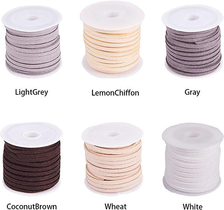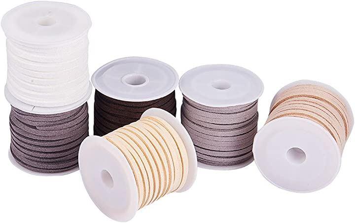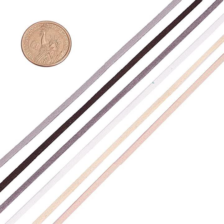 PandaHallElite約5m/色砂系6色スエードコード3x1.5mm人工合成革ひも合皮平革紐チョーカーオリジナル皮紐レザークラフトアクセサリーパーツネックレス&ブレスレット&イヤリング