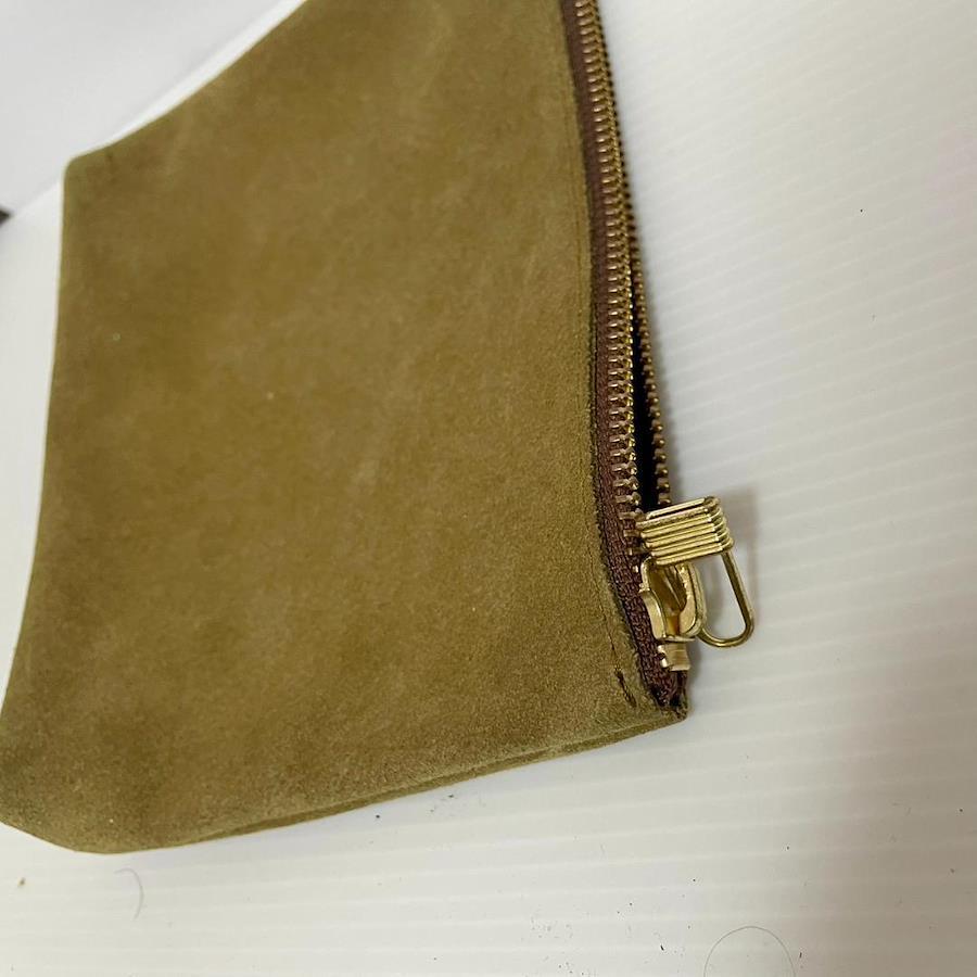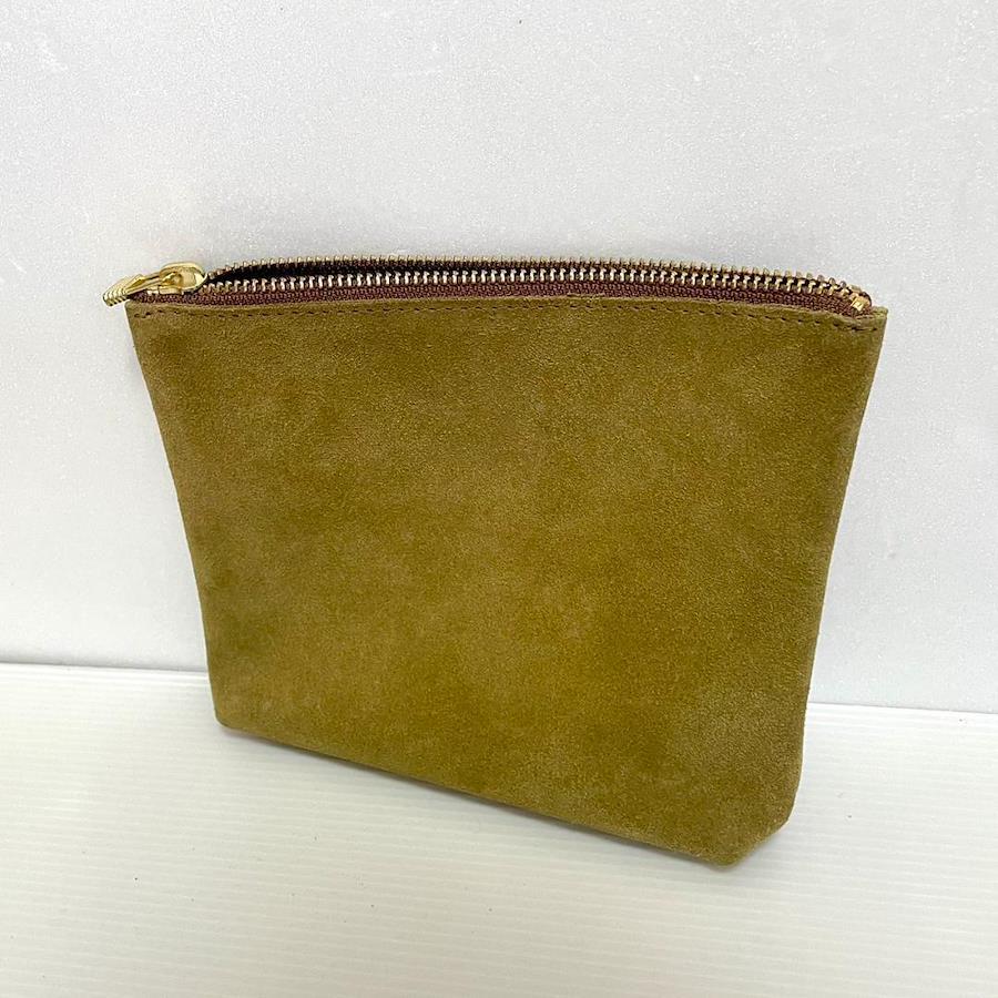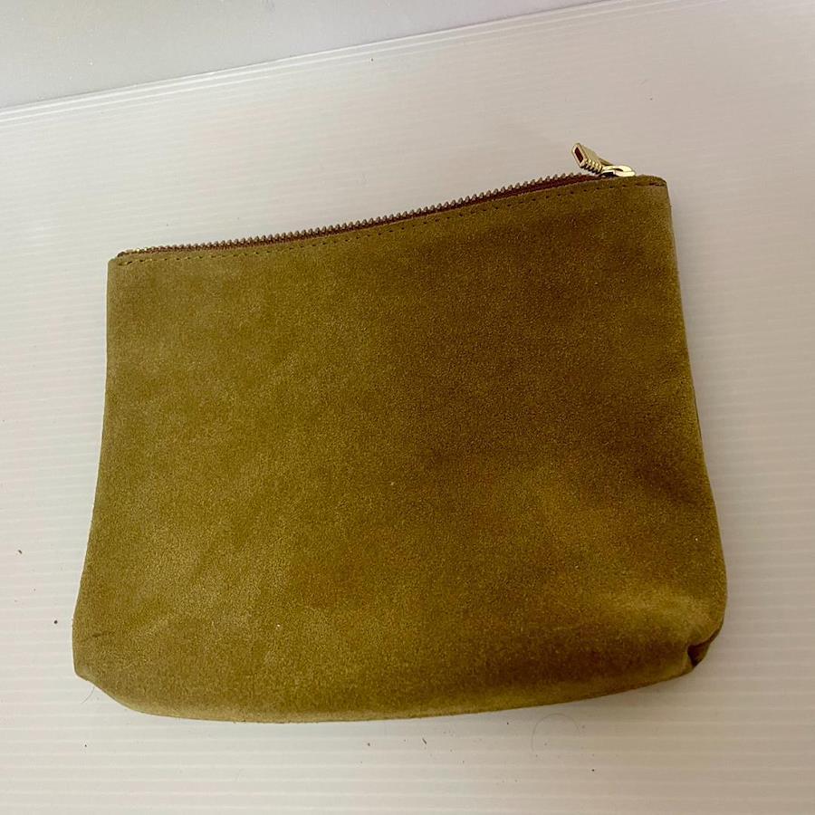 こちらは スエード調 ポーチ ベージュ ゴールド金具 小物入れ シンプル マルチケース になります。