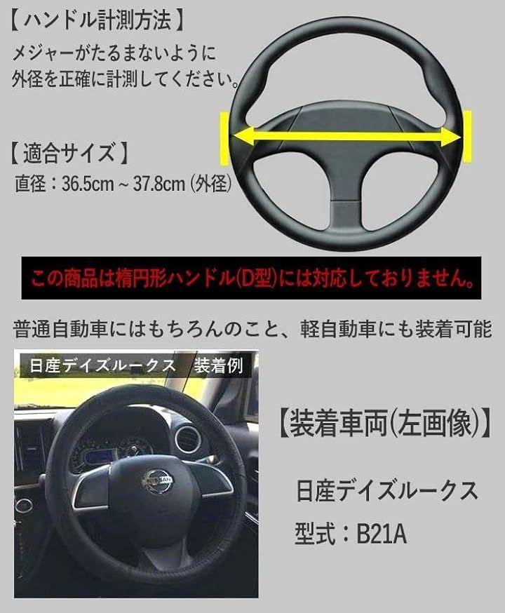 必ずお客様のお車のハンドル直径(下記商品説明欄参照)をご確認の上ご購入下さい。