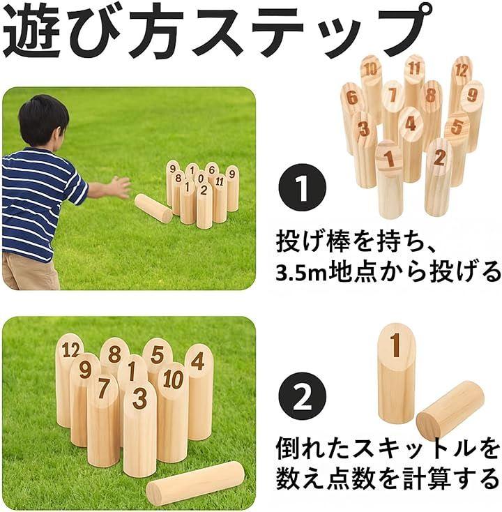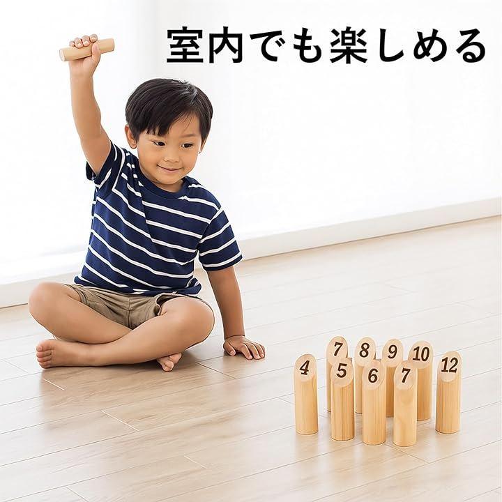 フィンランド発祥で、3.5m離れた場所から木製の棒を投げて、数字が書かれたスキットルを倒し、得点を競うゲームで、子供から大人まで幅広い層で楽しめるアウトドアゲームです。