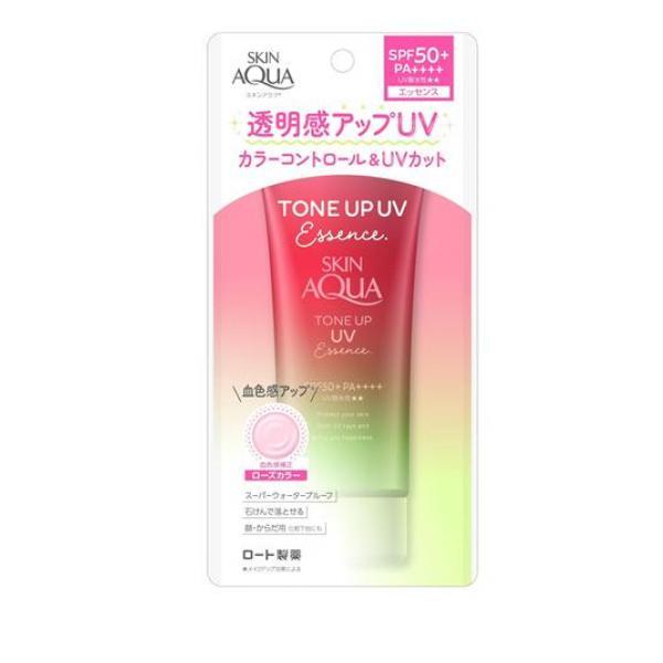 製品の特徴●ロート製薬 スキンアクア トーンアップUVエッセンス ハピネスオーラ ローズカラー(ROHTO SKIN AQUA TONE UP UV Essence)●UVカットしながら色と光をコントロールし、肌をトーンアップ。あなただけの透明感を引き出すローズカラーの顔・からだ用日焼け止め。●すーっとのびて、みずみずしい使い心地。日やけ止めを塗っているだけなのに、いつもの素肌をより透明感のある肌に。●血色感ピンク×くすみカバーオレンジ=ローズカラーで、ナチュラルな透明感を演出!日光や光を反射し、肌の透明感をあげながら立体的にツヤめく微細なストロボパール(*1)配合。●スキンケア成分(保湿成分)としてヒアルロン酸Na、ビタミンC誘導体(*2)、ピュアニュアンスコンプレックス(*3)配合。●SPF50+/PA++++。●幸せあふれるハピネスブロッサムの香り。●化粧下地にも。●スーパーウォータープルーフ。●石けんで落とせます。●パラベンフリー。鉱物油フリー。アレルギーテスト済み(全ての方にアレルギーが起こらないというわけではありません)。●販売名:スキンアクアトーンアップUVエッセンスh〈日やけ止めエッセンス〉