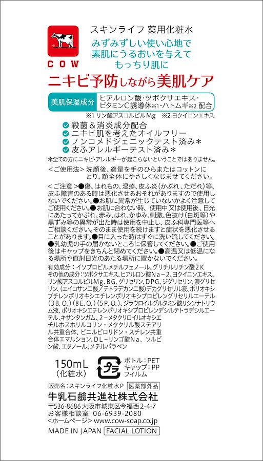 医薬部外品。ニキビを予防し、毛穴の目立たないもっちり肌に。ニキビケアだけじゃない! 毛穴の目立たない赤ちゃん肌に!内容量:150ml原産国:日本ブラント名: スキンライフ