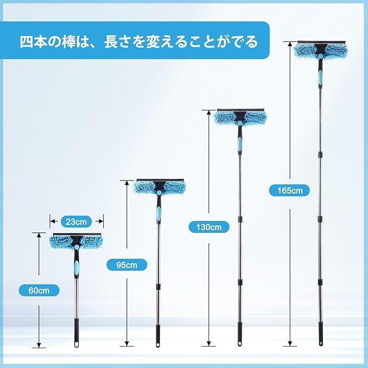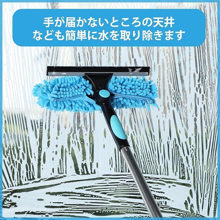 「延長ポール付き」:延長ポール付きで60cm と165cm のどちらかを選べるので、手が届かないところの天井なども簡単に水を取り除きます。