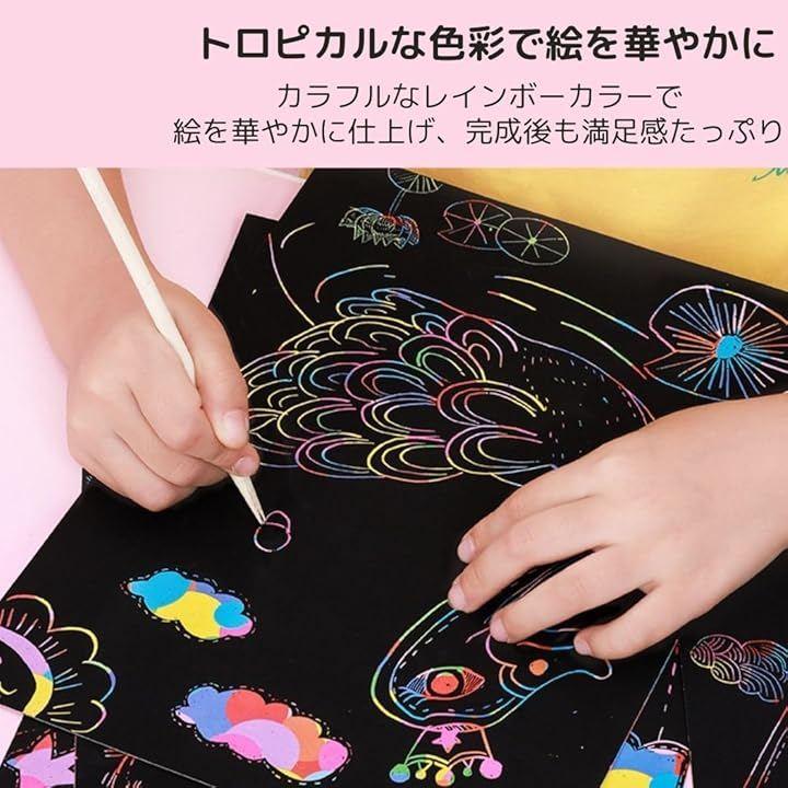 「色鮮やかなアートが簡単に。」真っ黒な表面を削ると鮮やかな色が浮かび上がるスクラッチアート。