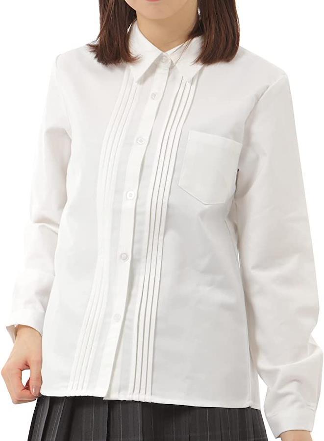 スクールブラウスで私だけのお洒落を。オルガン柄のプリーツ定番のスクールブラウスにオルガン柄のプリーツを前面にあしらったデザインブラウスです。