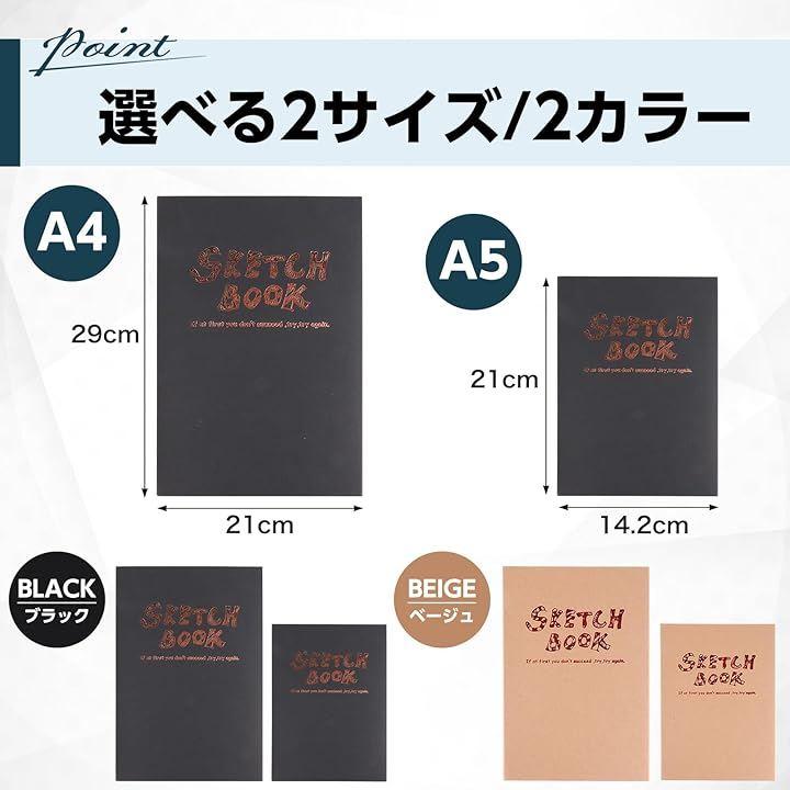 「 持ち運びにも、保管にも最適なサイズ/製品仕様 」 *サイズ:A4(約21cm x 29cm)A5(約14.2cmx21cm) *枚数:120枚 *紙厚*仕様:木材パルプ紙、屋外でのスケッチから、室内での本格的な制作まで、あらゆるシーンで活躍します。