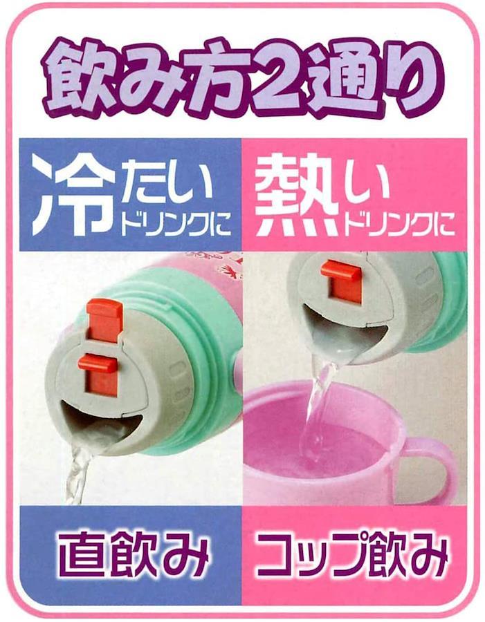 真空二重構造、超軽量タイプステンレスボトル2通りの飲み方に対応冷たい飲み物は直飲みで、熱い飲み物はコップに注いで真空二重構造で保温・保冷飲み口はワンタッチ式スライドバー小学生、中~高校生まで幅広く使えます持ち運びに便利なショルダーベルト&ネームプレート付氷が入れやすいワイド口径軽量コンパクトなステンレス製直飲みの際は熱いものを入れて飲まないで下さい