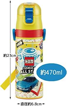 通常1-5営業日で発送:スケーター(Skater) 子供用水筒 2WAY 直飲み コップ付き トミカ tomica 430ml(コップ時) 470ml(直飲み時) ステンレス キッズ 保冷 軽い 紐付き 幼稚園 男の子 SKDC4