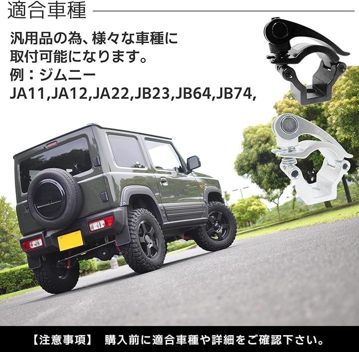 「適合車種」様々なオフロード車、ジムニー,JA11,JA12,JA22,JB23,JB64,JB74,シエラなど。