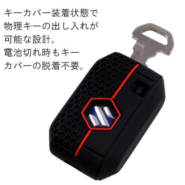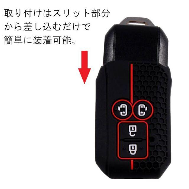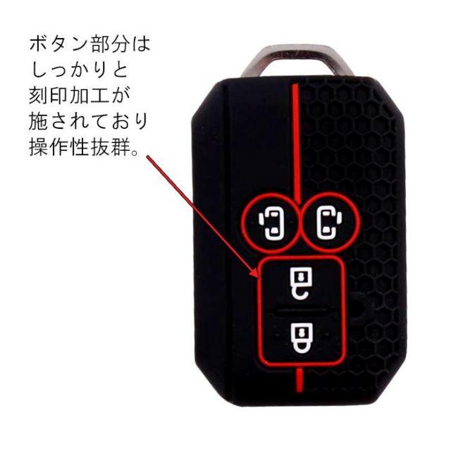 商品名:スズキ キーカバー スペーシア カスタム ギア ワゴンRスマイル ソリオ バンディット キーケース 両側スライド スマートキー アクセサリー カスタム パーツ・耐衝撃性、耐防汚性に優れたシリコン製のキーカバー。・スマートキー本体に被せるだけで簡単に取り付け可能。・専用設計のため、ぴったりフィット。・ボタン部分は刻印が打刻されており、しっかりとした凹凸のある造り。・取り付けにより、電波が弱くなることもございません。【タイプ】4つボタン 両側スライドドア【カラー】ブラック/レッド/ブルー【適合】スペーシア MK53S MK54S MK94Sスペーシアカスタム MK53S MK54S MK94Sスペーシアギア MK53S MK54S MK94SワゴンRスマイル MX81S MX91Sソリオ MA27S MA37S MA47S MAD7Sソリオ バンディット MA27S MA37S MA47S MAD7S※ボタンの配置や数が異なる場合でも装着は可能です。※年式等で形状が異なる場合がございますので、画像内適合キー形状を必ずご確認ください。【脱着方法】スリット部分から被せるだけで、簡単に取り付け可能。【注意事項】取扱説明書は付属いたしません。商品番号:bt-key-212-b