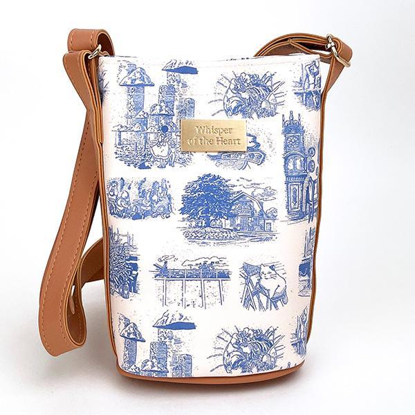 耳をすませばの名シーンの柄がちょっと懐かしいアンティークな雰囲気のバケツ型のポシェットです。口元にマグネットで留められるようになています。背面にカードポケットが1箇所あります。