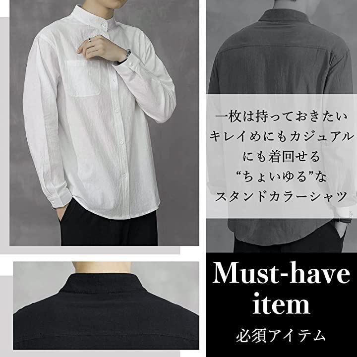 ・「スタンドカラーシャツ」スタンドカラーのメンズシャツ。