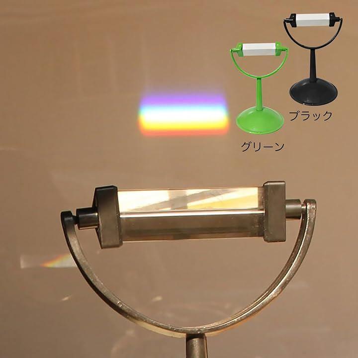 」「セット内容」: 三角プリズムx1,スタンドx1,箱x1「カラー」: (スタンド) グリーン,ブラック「サイズ」: 8x2.5x2.5cm「素材」: 光学ガラス「折射率」: 1.7「透光率」: 96%「入射角度」: 45°