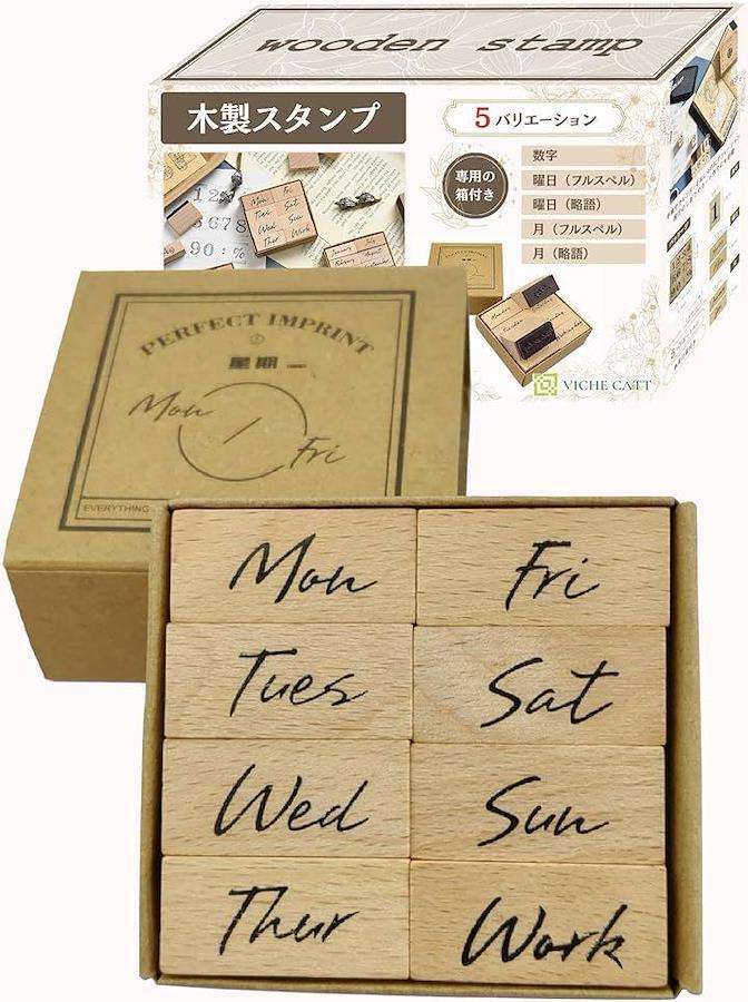 この木製スタンプセットは、自作の手帳やカレンダーの予定表作りにぴったりです。