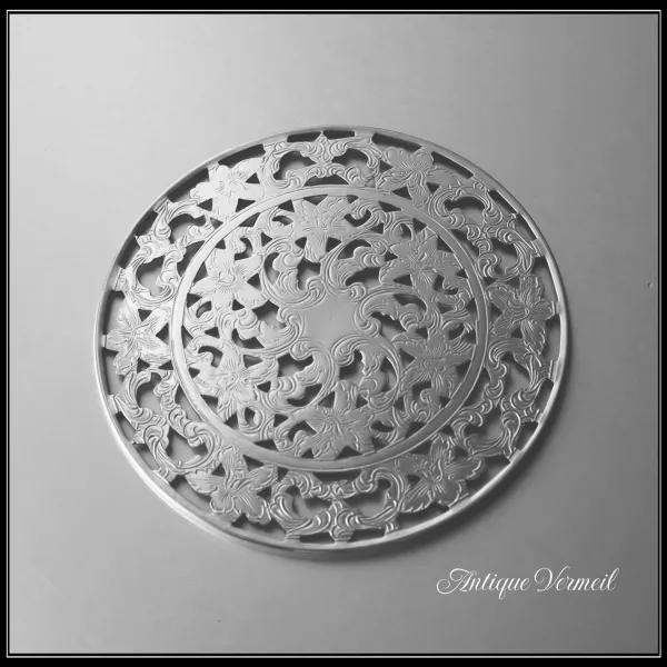 ヴィンテージ・スターリングシルバー、シルバーオーバーレイ(銀巻き装飾)、フローラルモチーフのコースターです。