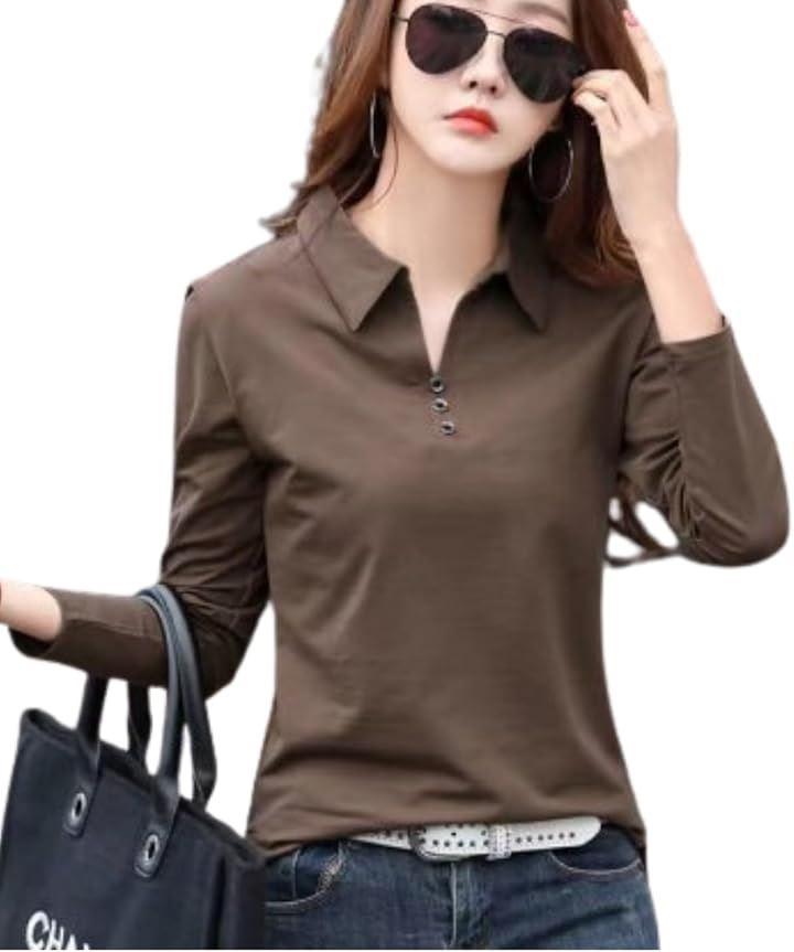 襟付きのレディースポロシャツ長袖は、清潔感のある印象を与え、オフィスや外出先にもぴったりです。