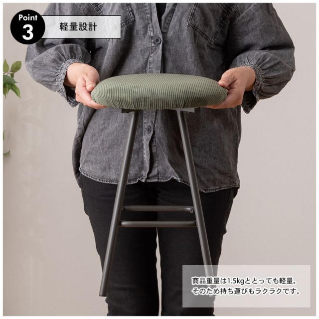 スツール椅子イスいすおしゃれコーデュロイスチール軽量丸型丸椅子円形ラウンドアンティークチェアモダングリーングレー