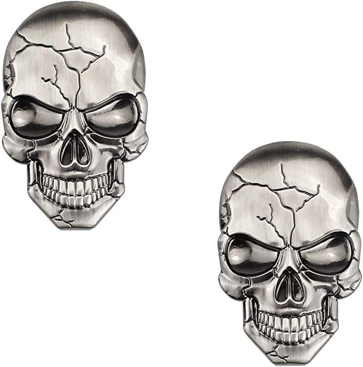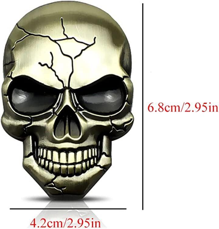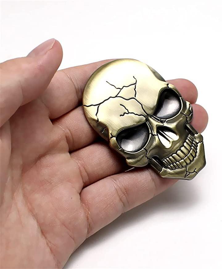 存在感のあるドクロの立体ステッカー、メタリックシルバー/アンティークゴールド2枚セットです。