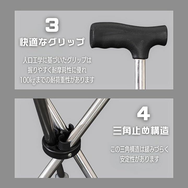 一本杖に比べて安定感があり、体をしっかりと支えます。