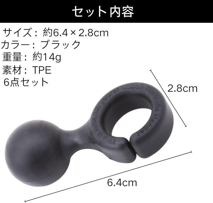 セット内容:6点セット、サイズ:約6.4x2.8cm、重量:約14g、素材:TPE、カラー:ブラック。
