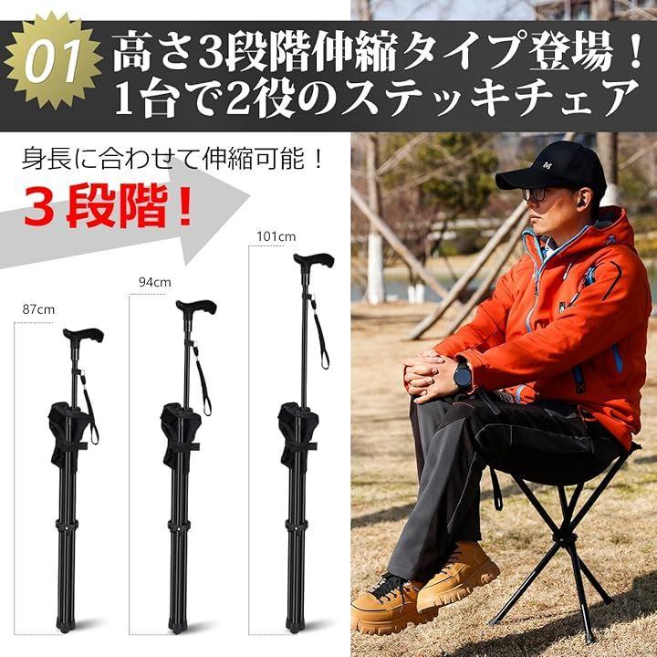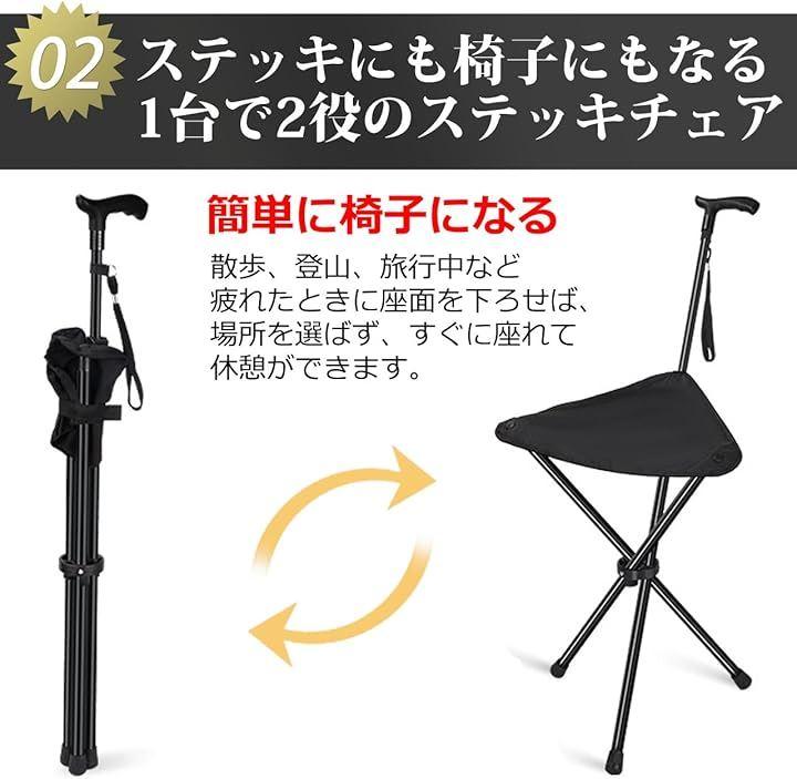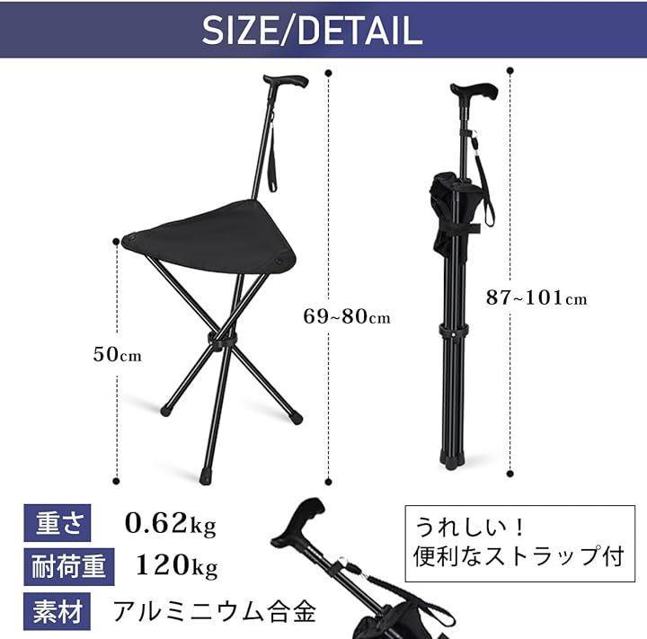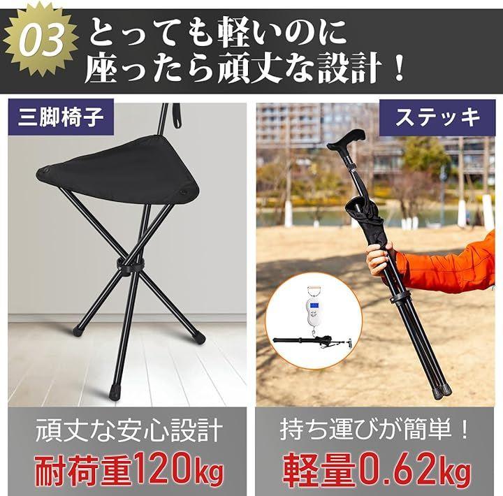 歩く時は杖として、疲れたら椅子として使える優れもの、ゴルフ・釣り・スポーツ観戦などのちょいかけにおすすめです。