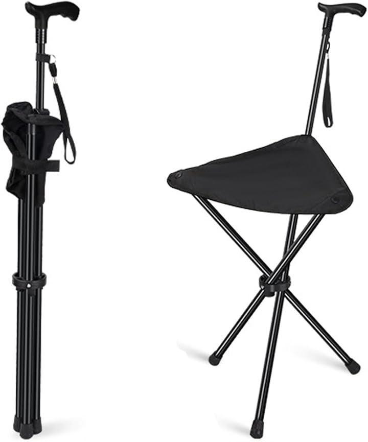 Folding Walking Stick Chair, 120kg Weight Capacity, 2-Way, Lightweight, for Elderly Care, Hiking, Walking, Travel