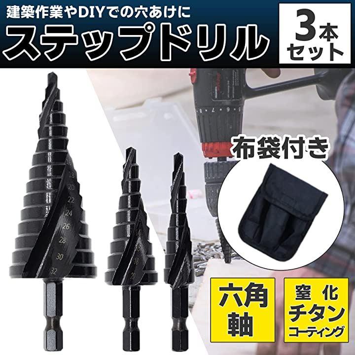 ・v「ステップドリル/タケノコドリル」窒化チタンコーティング仕様により摩擦熱の軽減で切れ味、耐久性が向上しております。