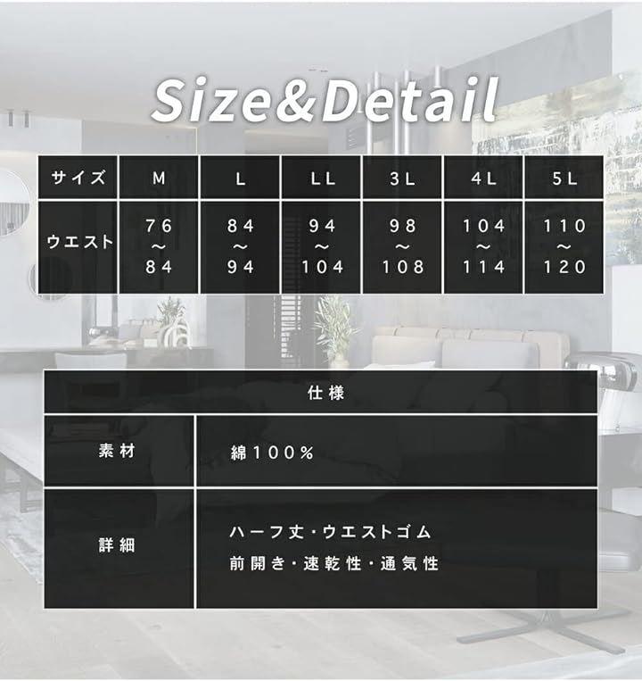 「サイズ」M(W76-84cm)、L(W84-94cm)、LL(W94-104cm)、3L(W98-108cm)、4L(W104-114cm)、5L(W110-120cm)