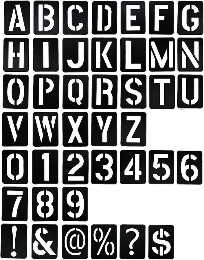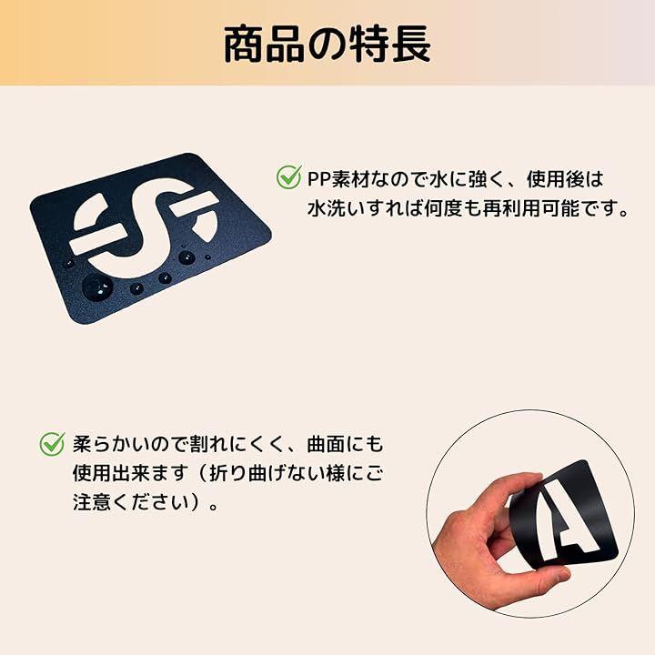 アルファベット(A-Z)、数字(0-9)、よく使用される記号(@、%、$など)を含む42枚の再利用可能なテンプレートが含まれています。
