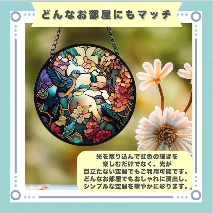 「幻想的な輝き」窓辺に吊るすだけで、幸運と癒しの空間を演出。太陽の光を受けたステンドグラスが幻想的な輝きを放ち、お部屋を一瞬で華やかに変える特別なアイテムです。