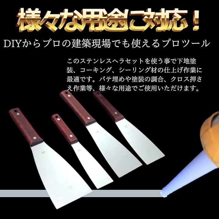 下地処理、左官、コーキング、シーリング材の仕上げ、塗料を混ぜたりクロスを押さえたりと様々な用途に使用できます。