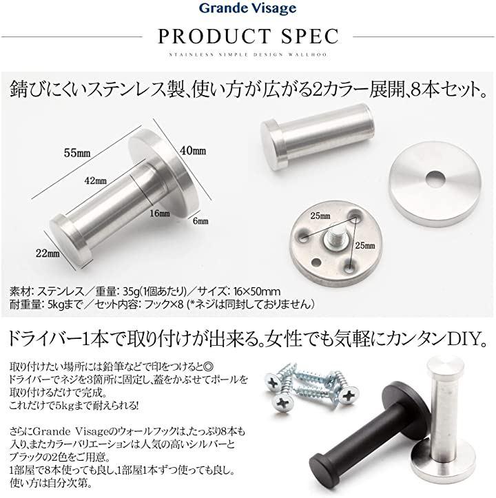 ・「仕様」内容:ウォールフック 8本セット カラー:シルバー、ブラック 耐荷重:約2kg程度