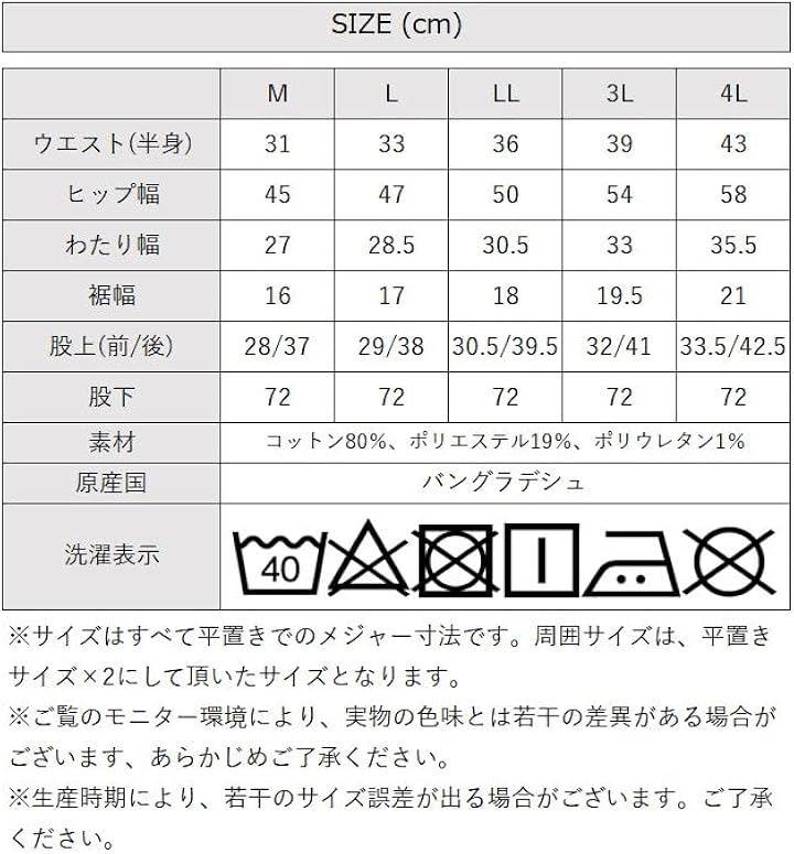 [3Lサイズ]ウエスト(半身):39cm、ヒップ幅:54cm、わたり幅:33cm、裾幅:19.5cm、前股上:32cm、後股上:41cm、股下:72cm
