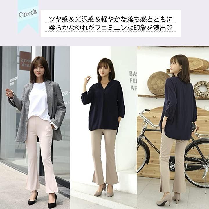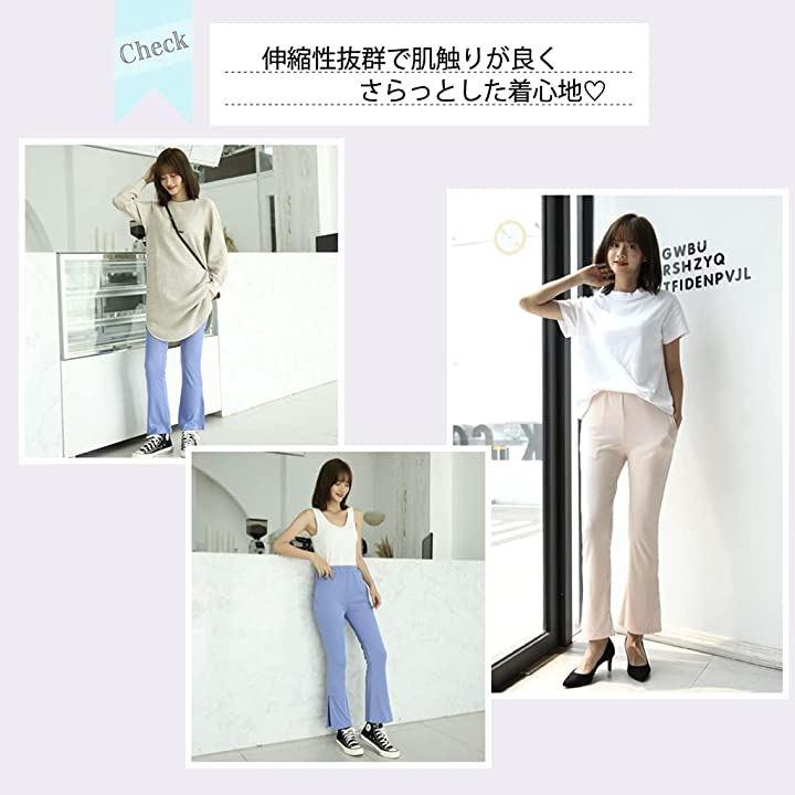 膝部分から裾に向かって広がるフレアラインがすっきりと細く見せてくれる優秀ボトムスです。