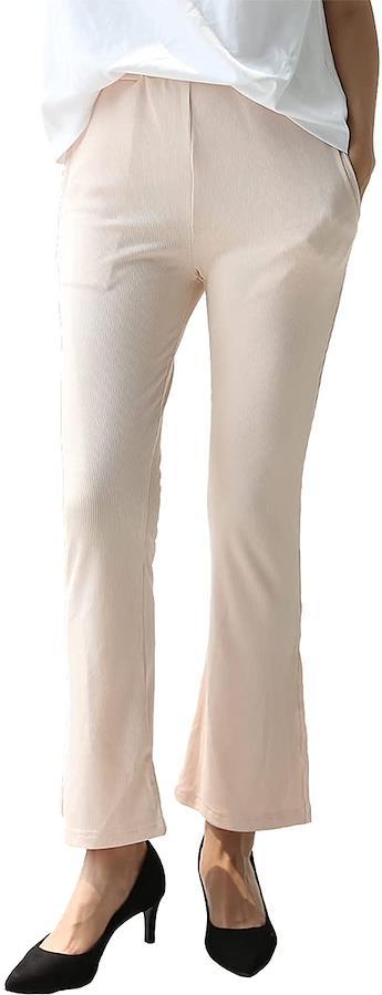 ・落ち着いた光沢感のあるリブ素材を使用したフレアパンツです。