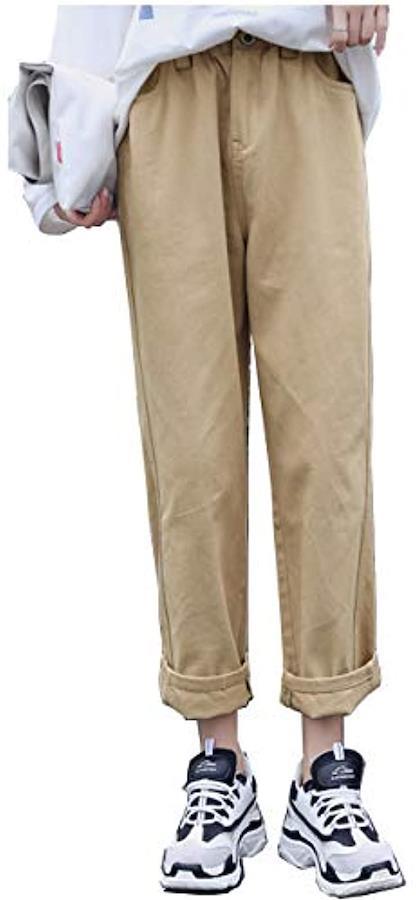 ハイウエストなので脚長効果抜群。 裾を折って靴下見えも可愛いです。