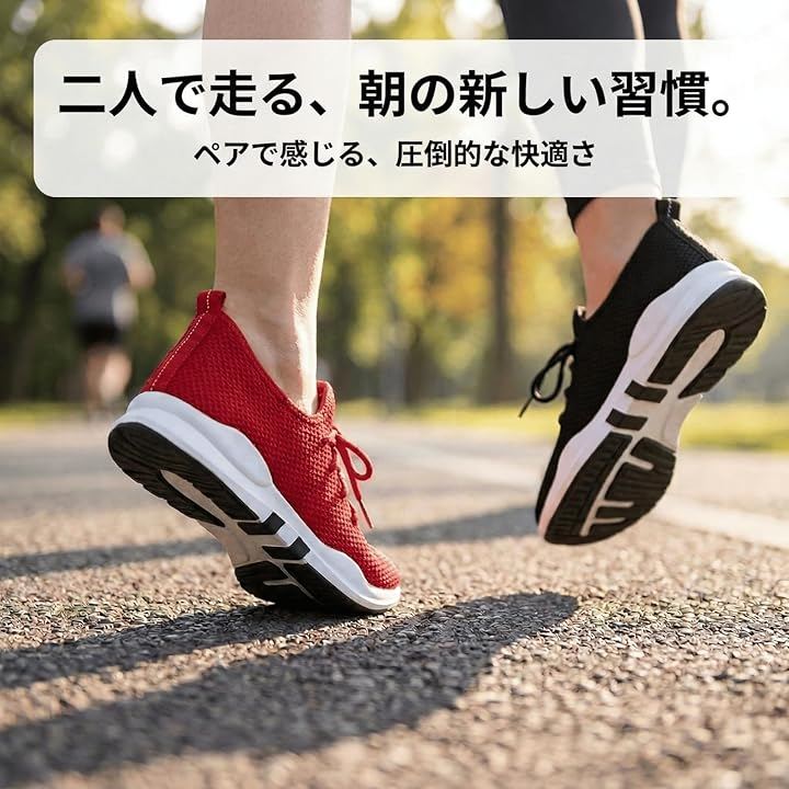 (優れた通気性)ジョギングシューズのアッパーには、通気性に優れたメッシュデザインが採用されています。