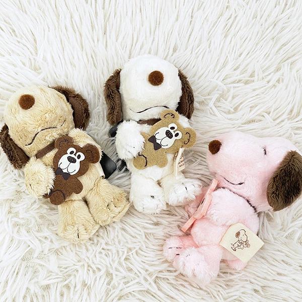 スヌーピーのマスコットです♪フェルト素材のベアを抱っこしているスヌーピーがとってもキュート♪ナチュラルカラーでふわふわの触り心地♪ボールチェーン付きなので、バッグに付けてもお部屋に飾っても☆彡