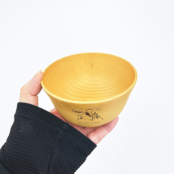 軽くて割れにくいスヌーピーの木製くりぬき汁椀です。小さなお子様から年配の方まで安心して使える◎ご飯や汁物にも使えて普段の食事にも使いやすい!シンプルで使いやすく、飽きの来ないデザイン★お子様の食器やピクニックなどの行楽にもGOOD!同シリーズもございますので揃えてみませんか♪※電子レンジ・食洗機 使用不可!