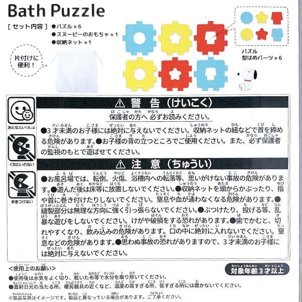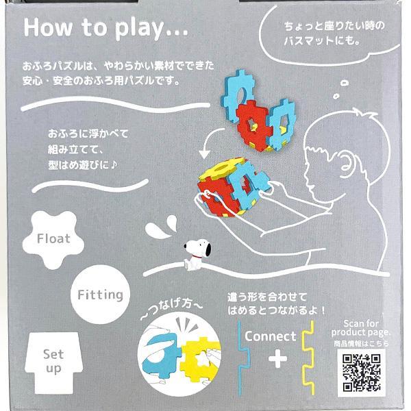 安心・安全の柔らかい素材(EVA)でできた、おふろ用パズルにスヌーピーのデザインが登場です♪お風呂に浮かべたり、組み立て&型はめの知育遊びがお風呂で楽しめ、お子様とのおふろタイムがさらに楽しく!ぷかぷか浮かぶスヌーピーフィギュア×1、浮かぶウレタンパズル(ハウス型×2、星型×2、丸形×2)、収納に便利なメッシュ製ネット付。6枚を連結すればお子様用の小さいバスマットとしても使えます◎◆サイズ/12cm×12cm×1cm(パズル1枚あたり)