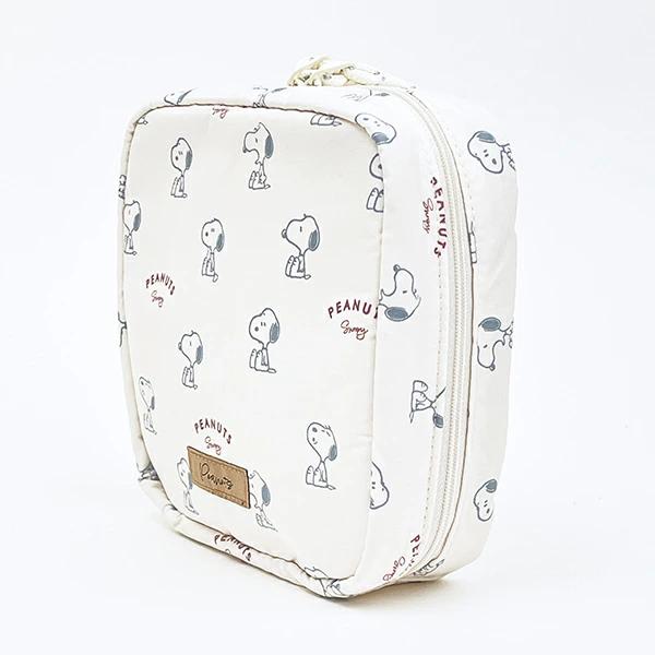 スヌーピーのたっぷりメイクポーチです♪くすみカラーの落ち着いた色が大人女子にぴったり♪がばっと開くので出し入れしやすいのも嬉しい♪内側にポケットが8個もついていて収納力抜群!コスメだけでなく小物、文具を入れるのにもぴったり♪ほかにも同シリーズの雑貨がいろいろあるのでお気に入りを揃えてください♪同シリーズのアイテムがいろいろあるので揃えたくなっちゃいます☆彡