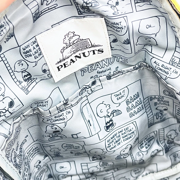ウッドストックのミニリュックです♪くすみカラーに、ウッドストックのダイカットポケットがとってもキュート♪外側に大きなポケットがついていて使い勝手抜群!お子さんが背負うのにも軽量で、オススメです◎おもちゃやお菓子をたくさん入れておでかけしましょう☆彡