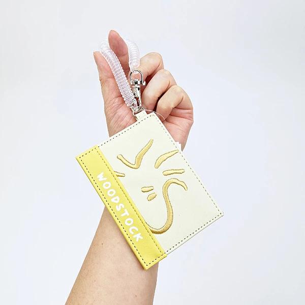スヌーピーのウッドストックデザインのパスケースです♪刺しゅうが大人っぽい♪スプリングコイル付きなのでバッグに付けてサッと取り出せる☆彡
