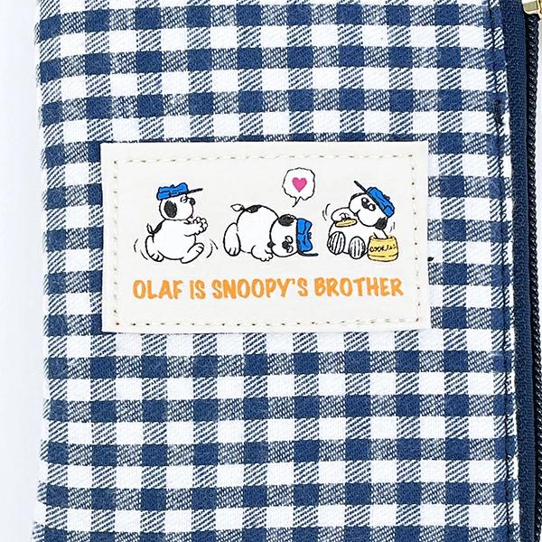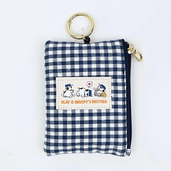 スヌーピーのきょうだい、オラフのパスポーチです♪ネイビーチェックのシンプルデザイン♪ほのぼのしたオラフが、とっても可愛い♪外側とポーチの中にもにリールが付いているため、バッグに付けて鍵もサッと取り出せる◎同シリーズで集めたくなっちゃう☆彡