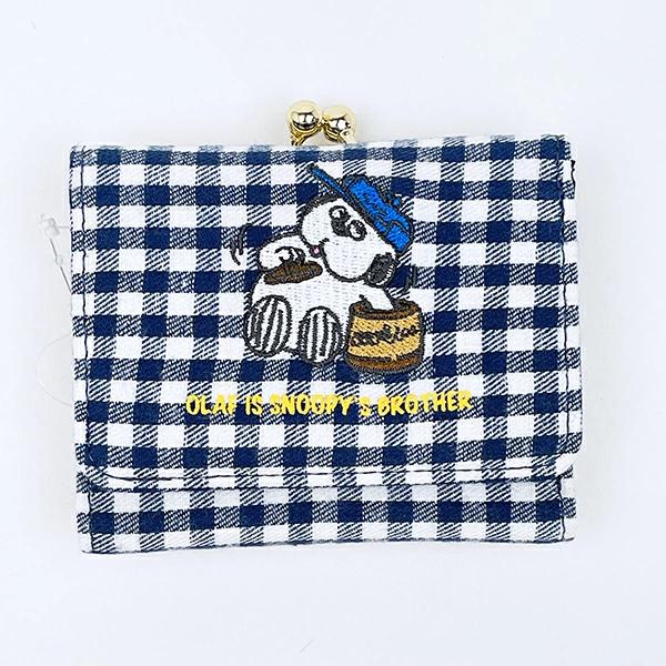 スヌーピーのきょうだい、オラフの三つ折り財布です♪ネイビーチェックのシンプルデザイン♪ほのぼのしたオラフが刺しゅうされていて、とっても可愛い♪同シリーズで集めたくなっちゃう☆彡